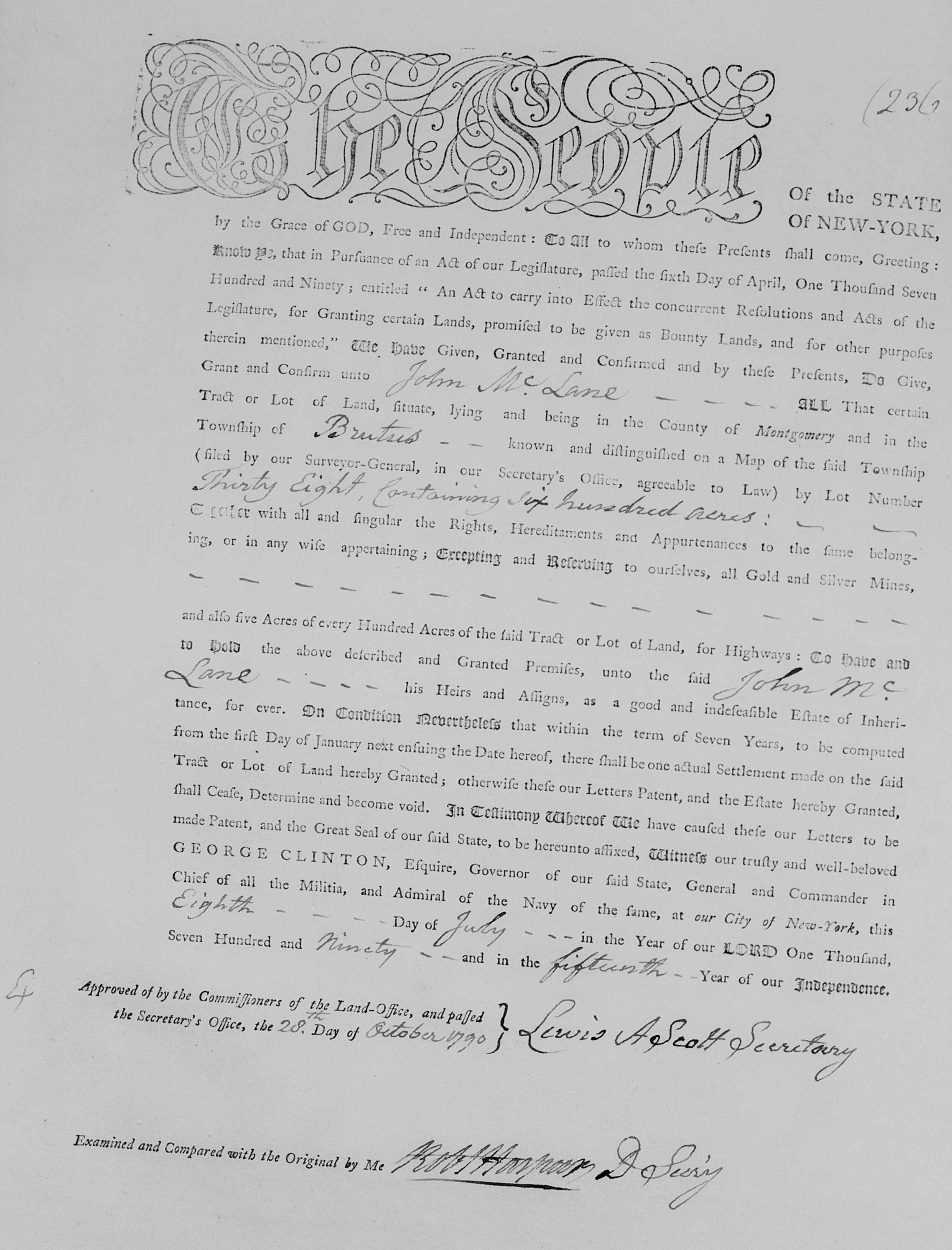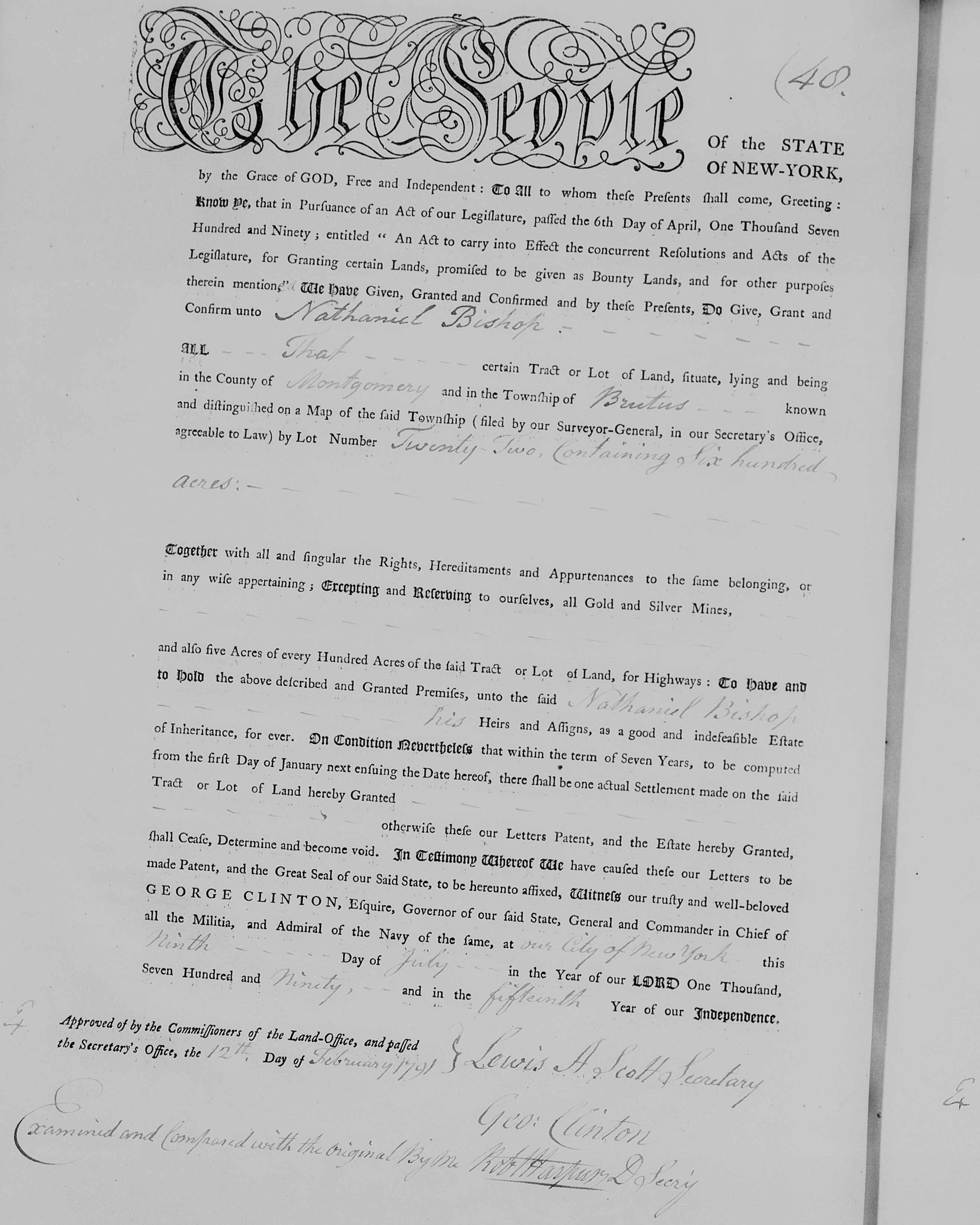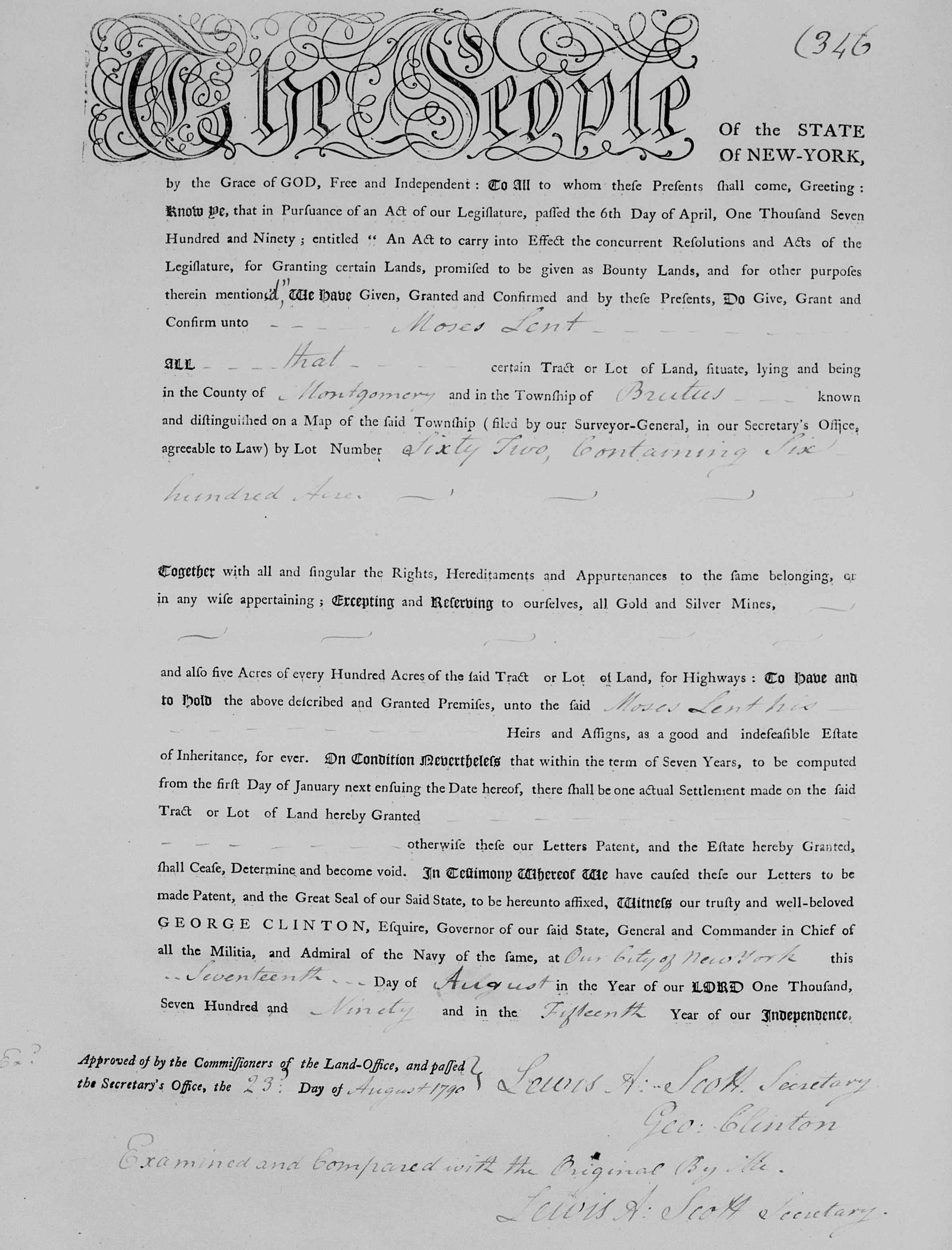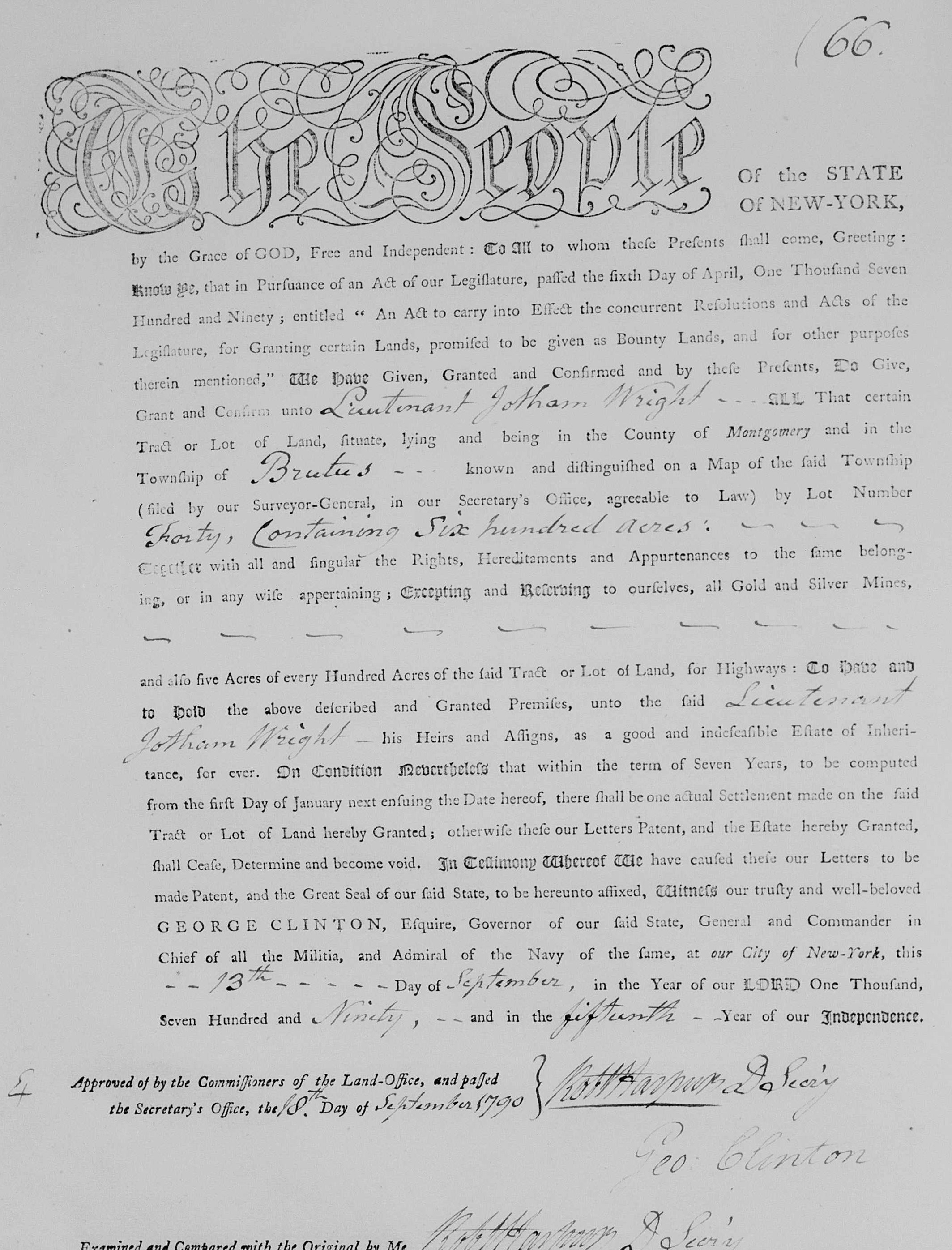 The circa 1790 map showing bounty land lots within Township #4 - BRUTUS, can be viewed HERE |