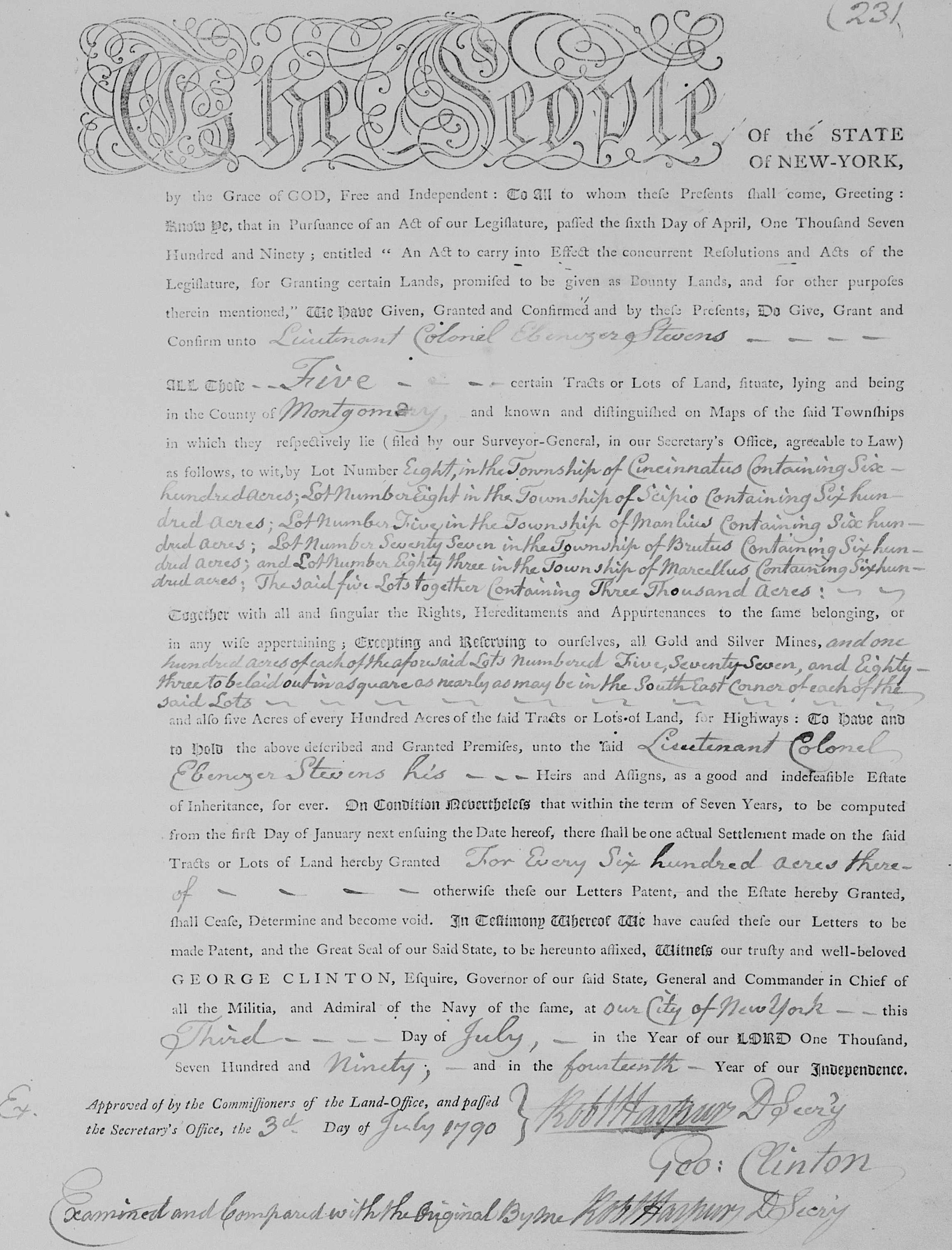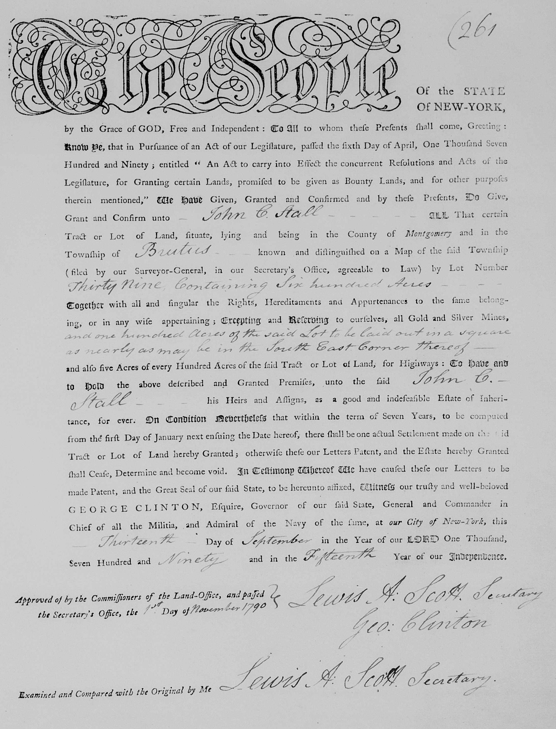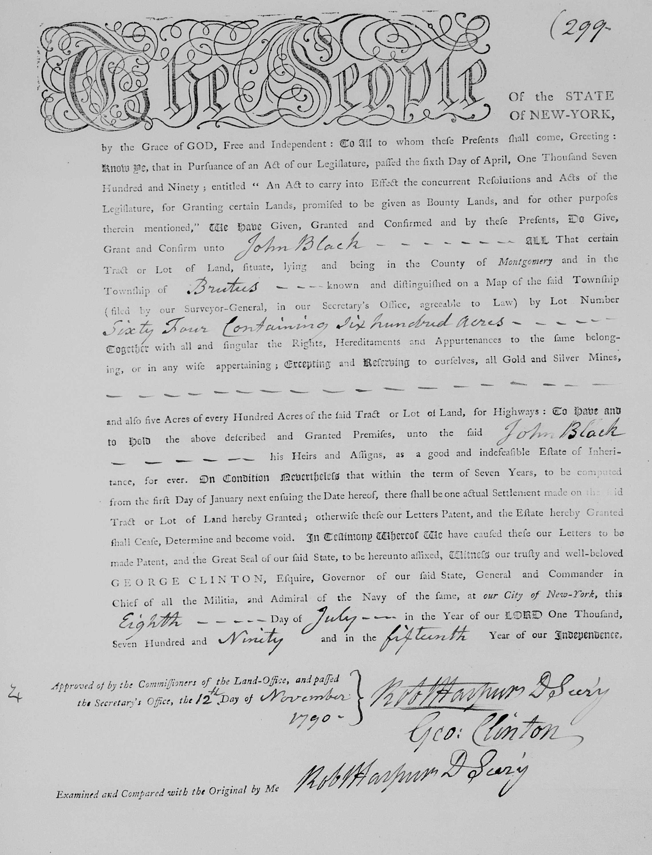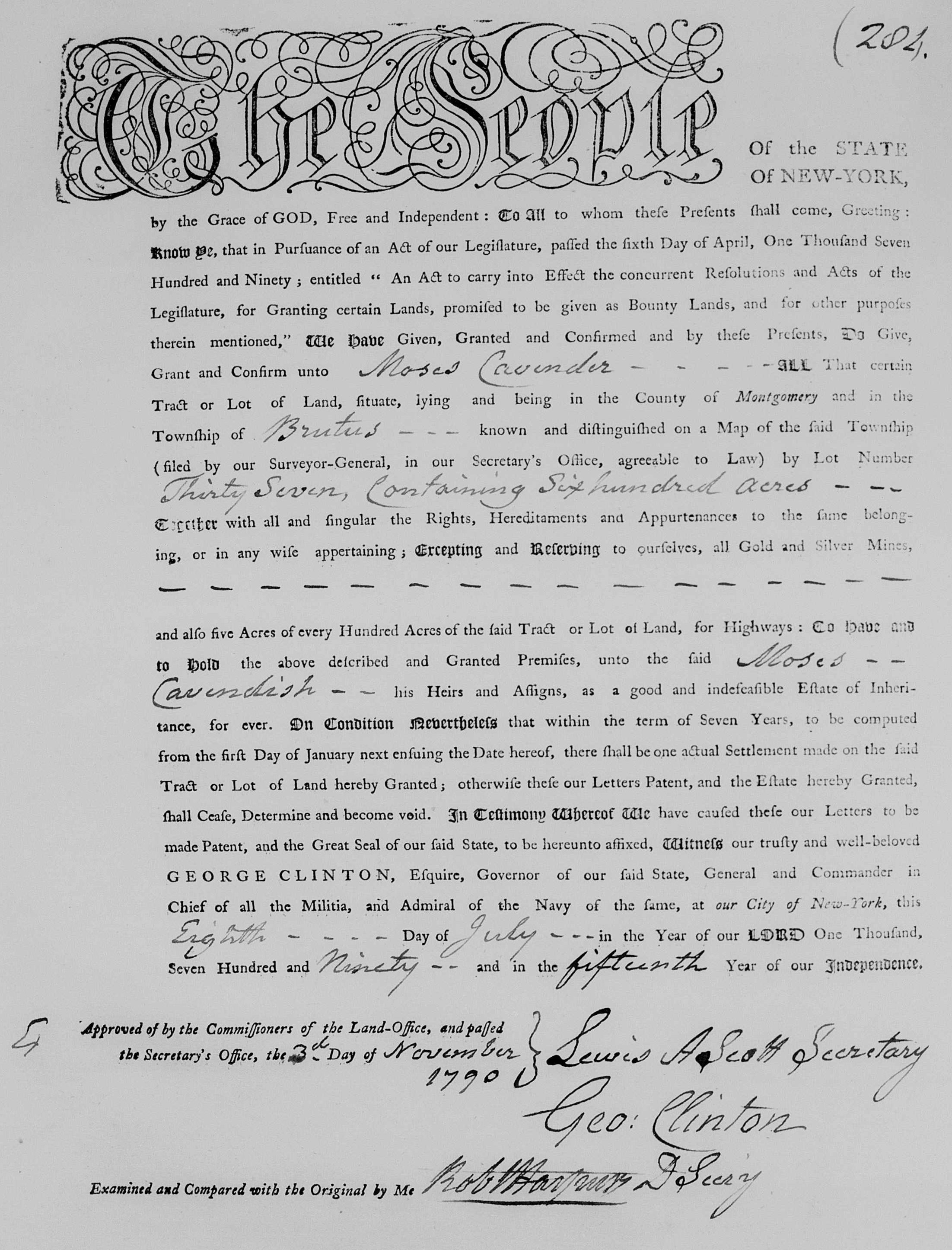 The circa 1790 map showing bounty land lots within Township #4 - BRUTUS, can be viewed HERE |