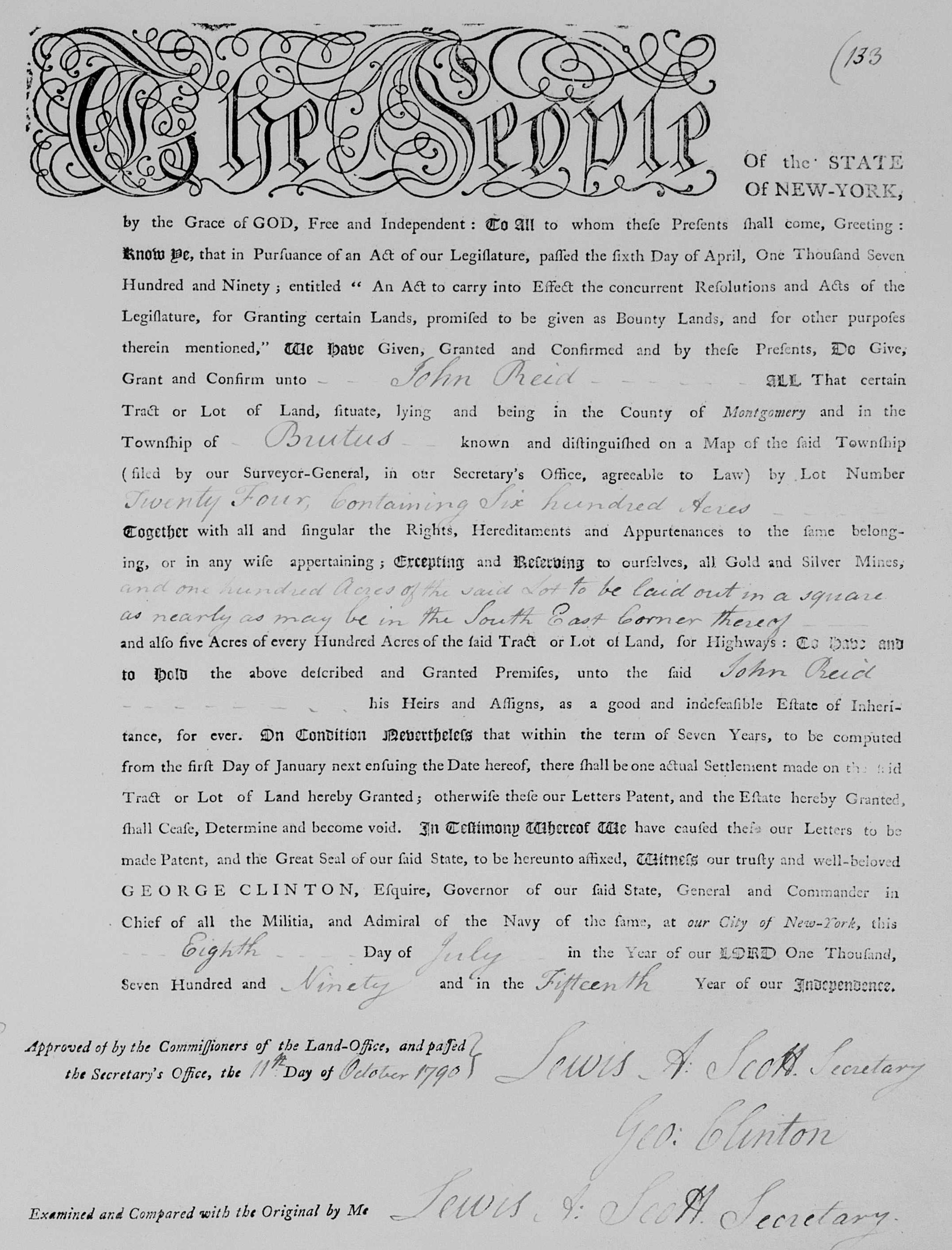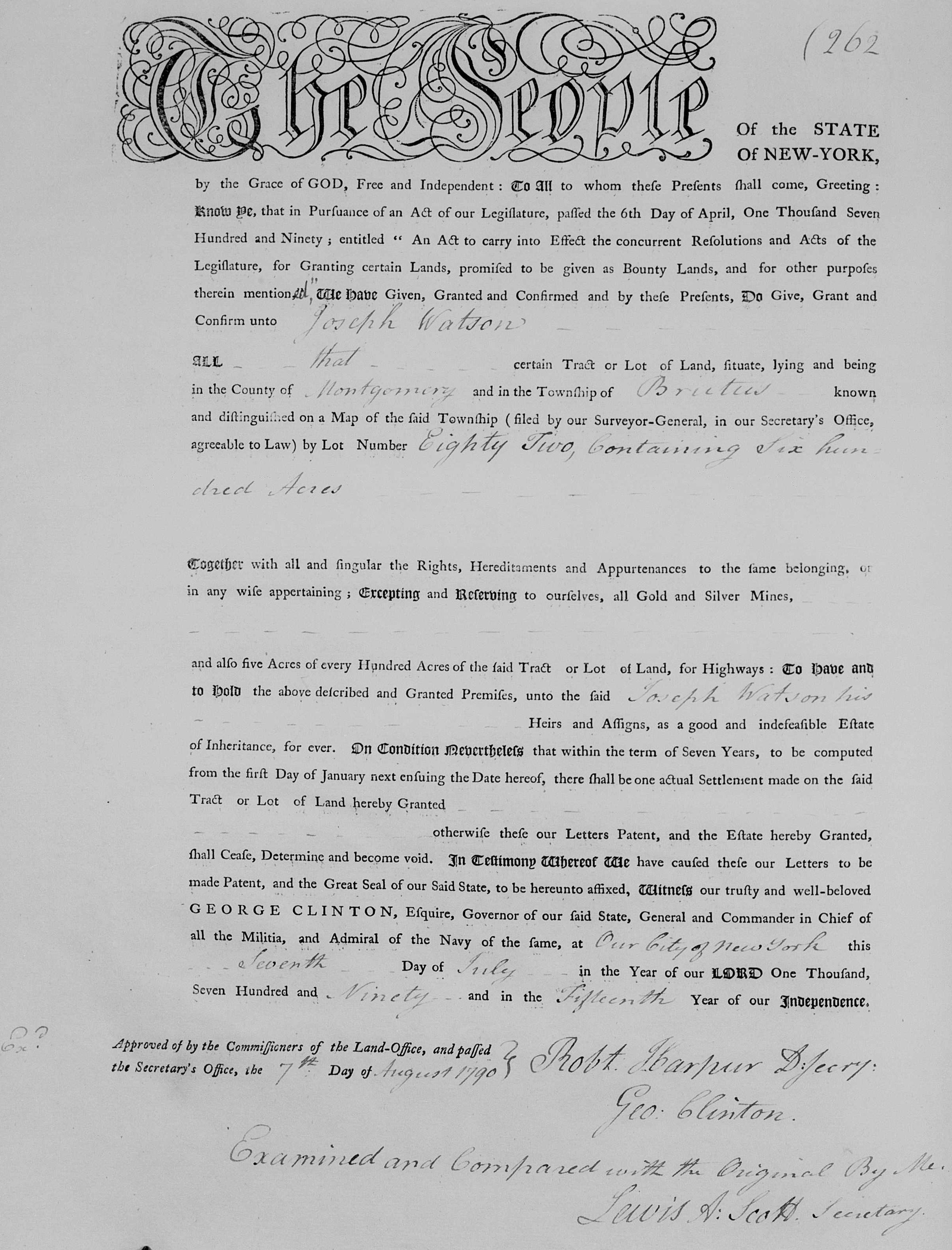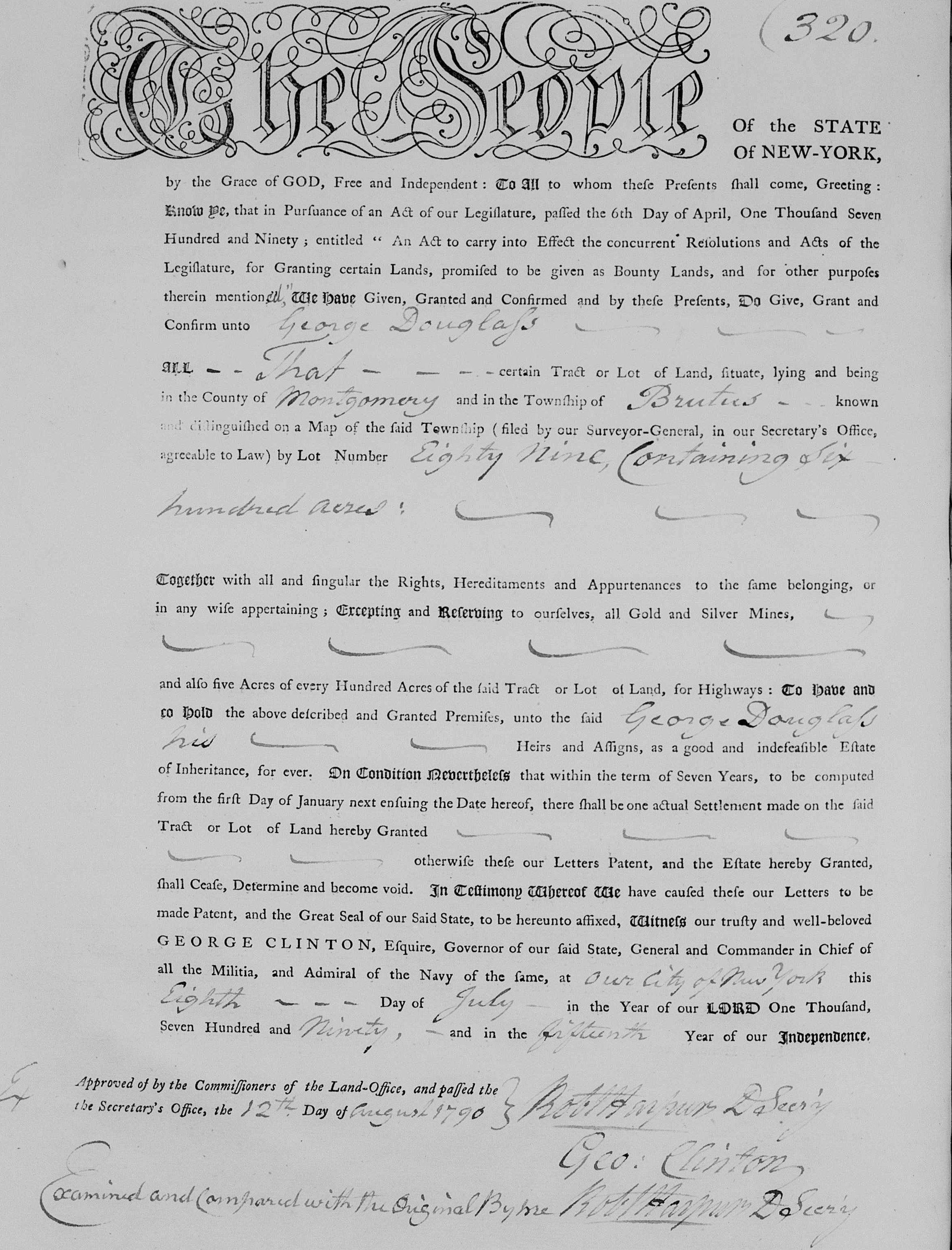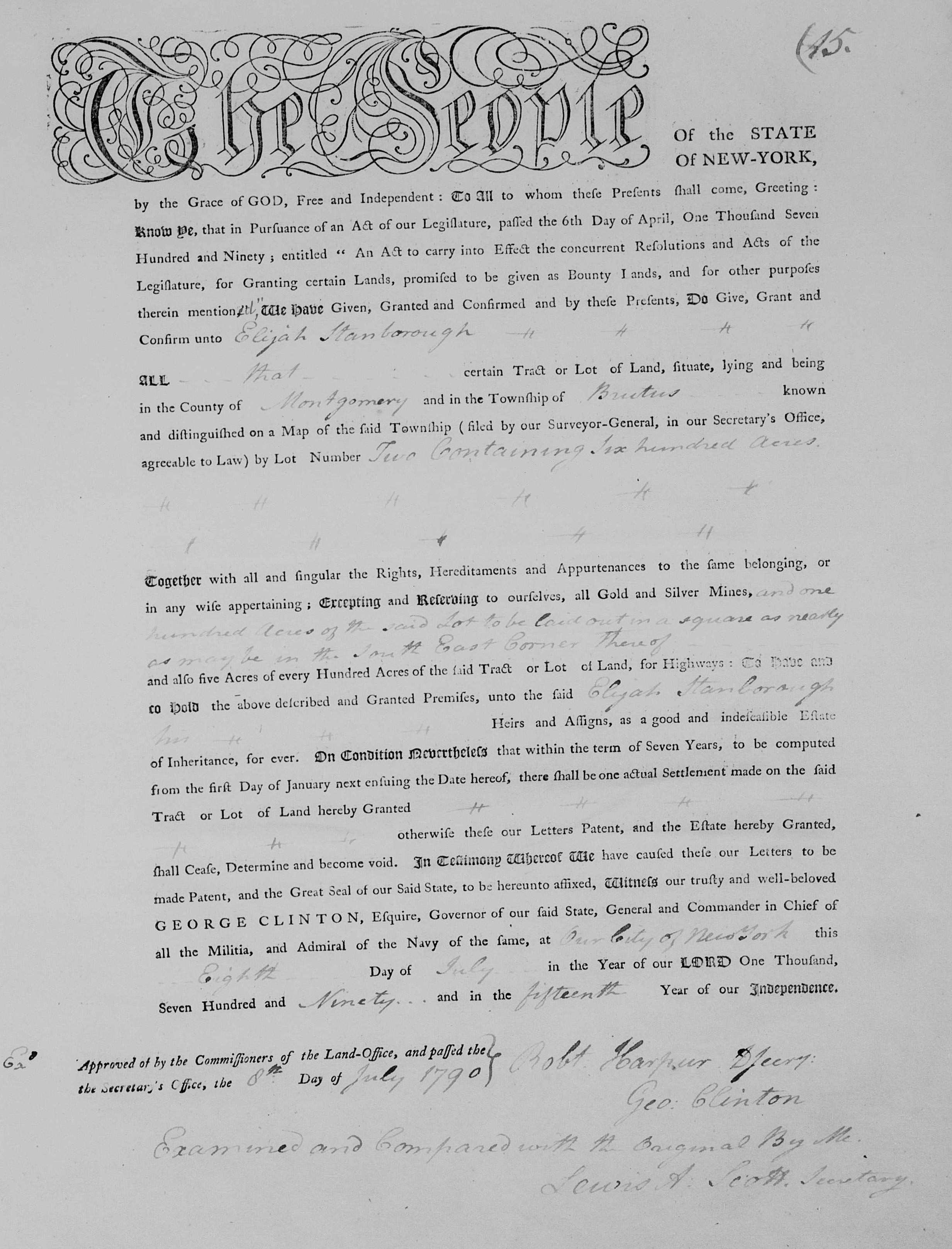 The circa 1790 map showing bounty land lots within Township #4 - BRUTUS, can be viewed HERE |