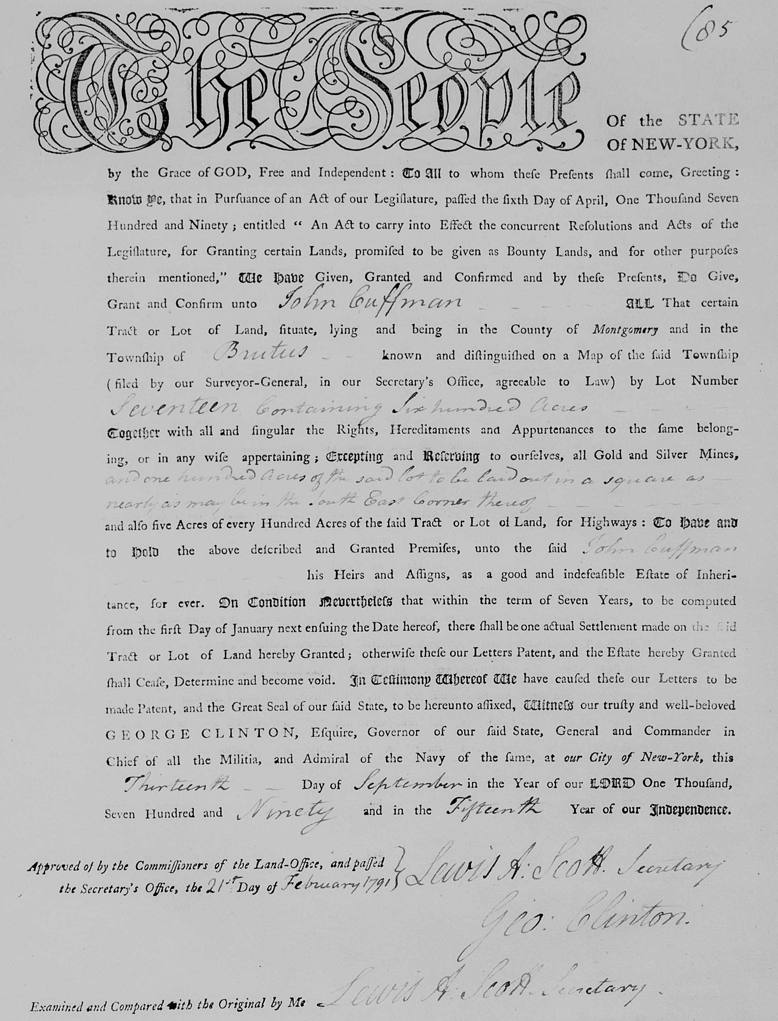 The Sept. 1790 surveyor field notes for lots within the military tract 'Township #4' - Brutus, can be viewed HERE